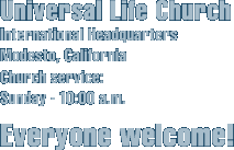 Welcome! You are about to become an ordained minister of the Universal Life Church, Modesto, California. Please be sure to find out about the legal doctrines governing your country, state or province.